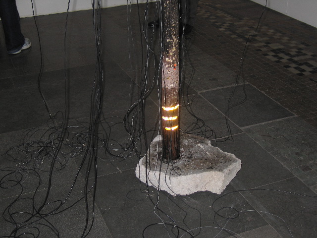 Power Pole, wood, wire, polymer clay, steel, paint, hardware, concrete,2008