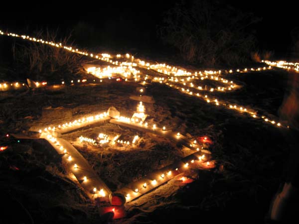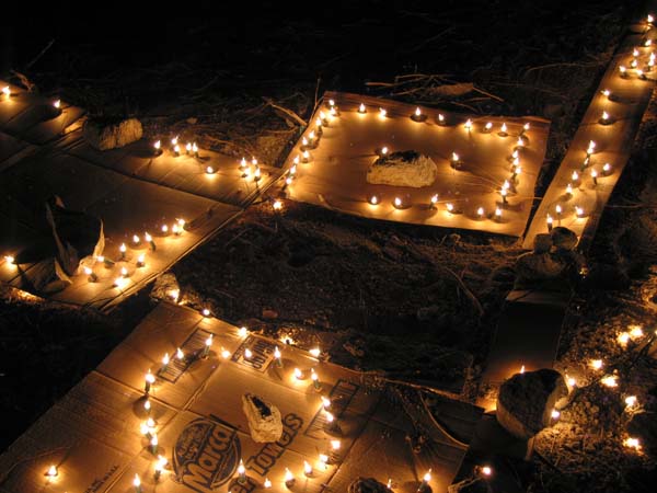 Ranchito Mirage, electric lights, cardboard, rocks, presented in Christening a Cabin, curated by Chris Veit, High Desert Test Sites, 2006