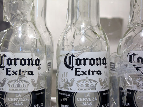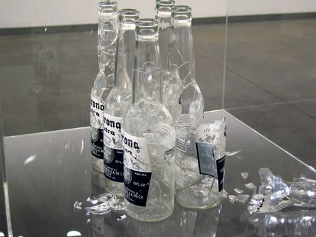 , broken and repaired glass bottles, acryilic case, 2005