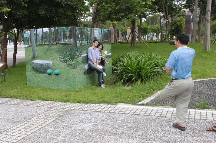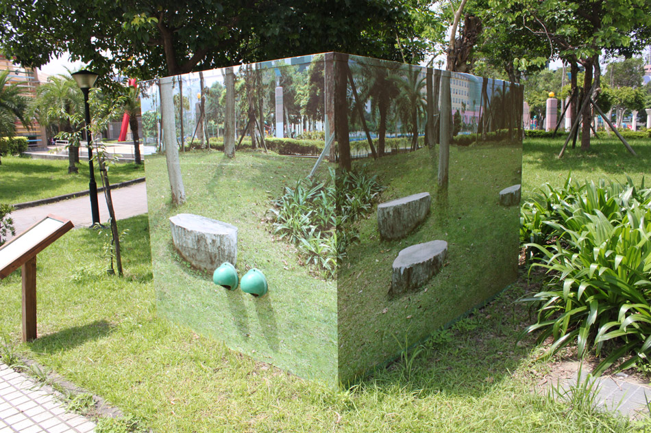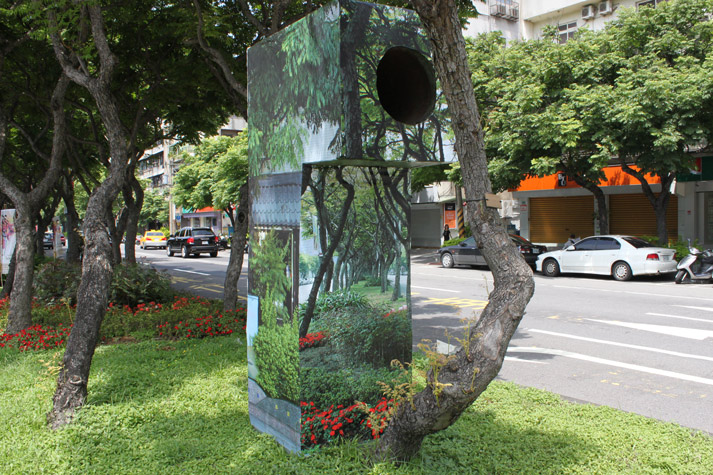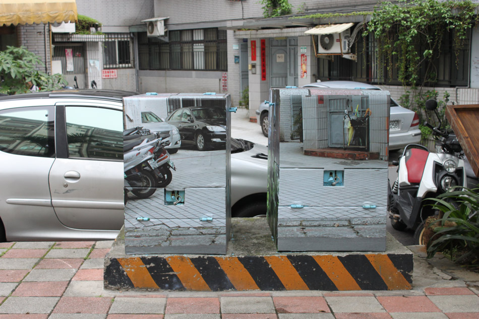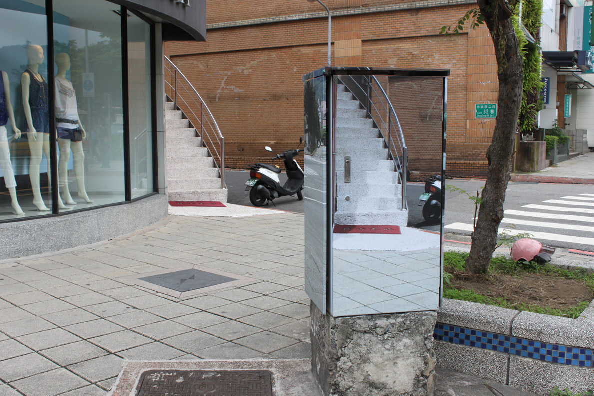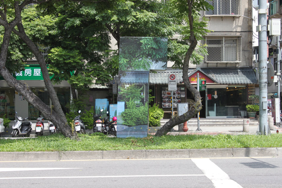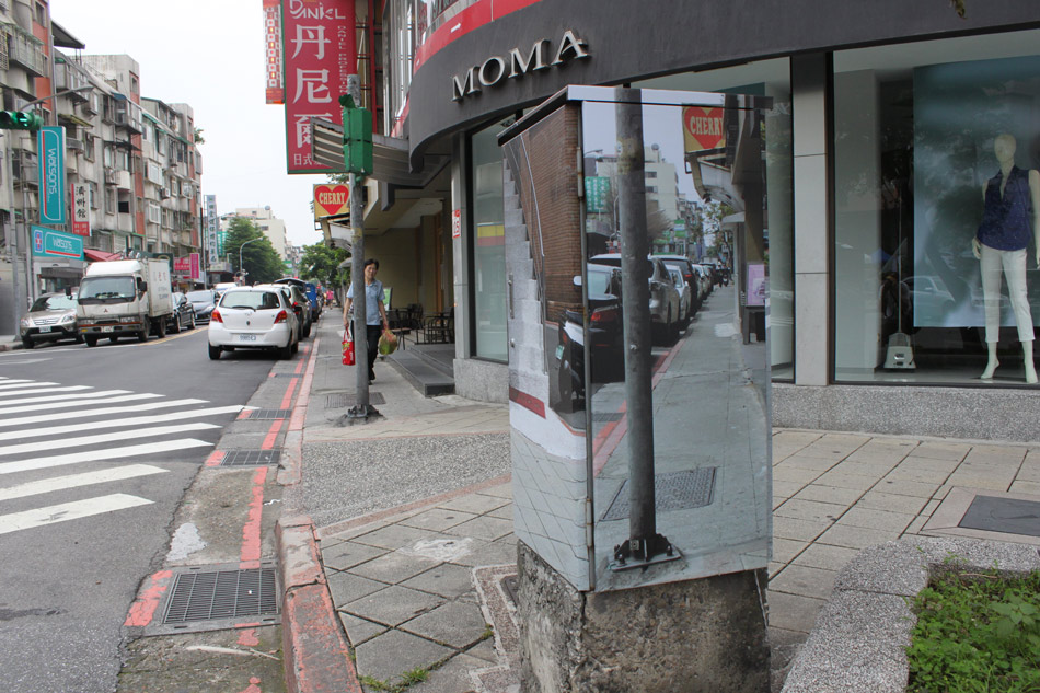 I added graphics to objects in nine sites throughout the Tianmu neighborhood of Taipei. I was one of six artists participating in a public art exhibition, Art With Wind, organized by Sean Hu and Peiyu Lin of Hu's Art Company.