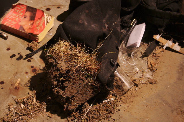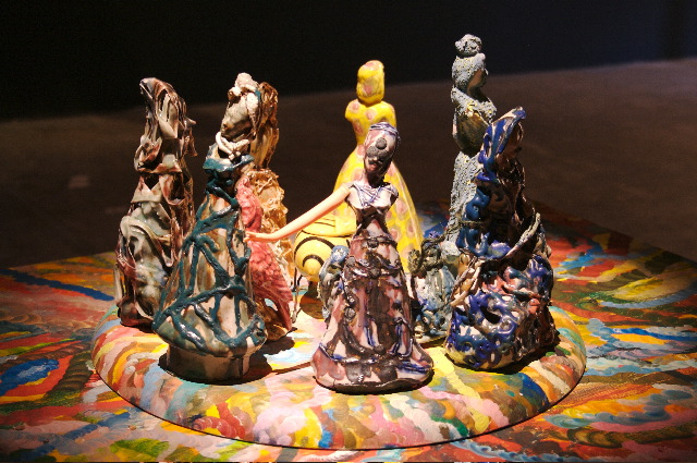 ceramic, oil paint on aluminum and canvas, sisal, wire, plastic, table, 2007