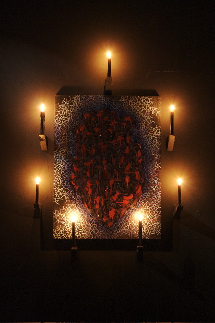 mixed media on linen, wood, candles, 2007
