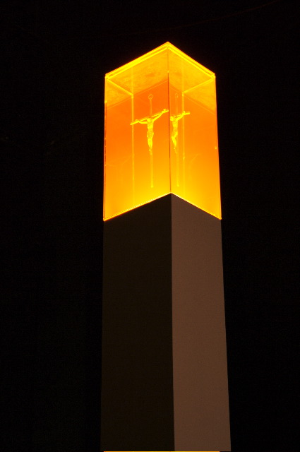 Sparks (alcoholic energy drink), metal crucifix, acrylic, lamp, wood enamel, 2007